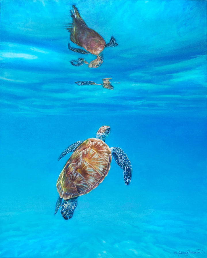 Esta es una tortuga marina con la que nadé en el Océano Índico frente a la costa de Kenia. ¡Fue una experiencia increíble! Un lienzo enmarcado de edición limitada del artista de vida silvestre James Corwin. La impresión está firmada y numerada por James.