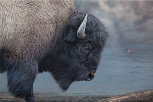 Cargando imagen: An oil painting of the sacred white bison as a limited edition canvas print by wildlife artist James Corwin based in Montana. Native American art inspired.