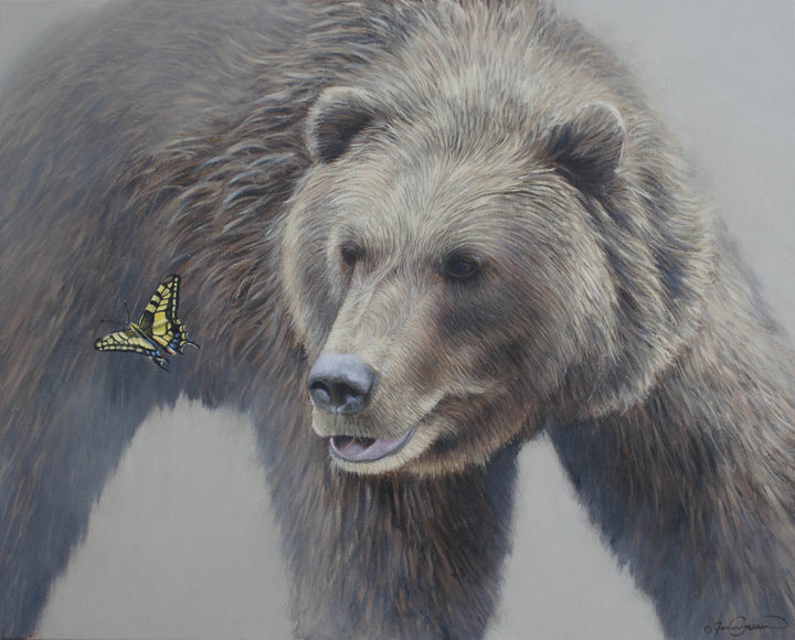 I chose to create an additional painting based on the butterfly theme because it softens the ferocity and the perspective often perceived with these large carnivores (i.e. wolf, bear). I love the idea of these "beasts" enjoying a evanescence moment with something so gently and delicate like a butterfly. It's the perfect contrast.